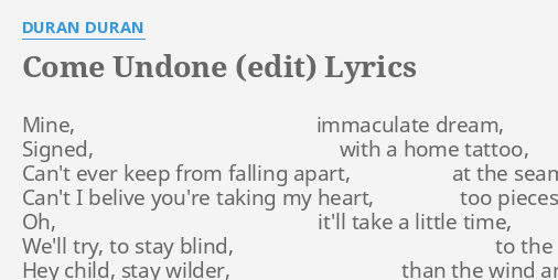 Duran duran come undone lyrics. Check spelling or type a new query. Maybe you would like to learn more about one of these? We did not find results for: